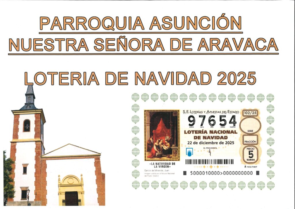🎄 ¡Ya está disponible la Lotería de Navidad 2025 de la Parroquia! 🎄 Un año más, en la Parroquia de la Asunción de Nuestra Señora de Aravaca ponemos a vuestra disposición participaciones de la Lotería Nacional de Navidad. 📌 Número: 97.654📅 Sorteo: 22 de diciembre de 2025💶 Precio: 5 € (se juegan 4 € y […]